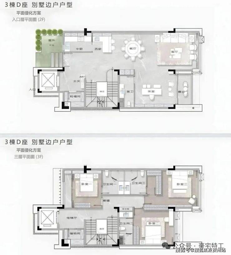 【约386㎡4+1房4卫】双梯入户,独立电梯厅,阔绰横厅直连多功能空间,三面舒适采光,主次卧双套房,270°环幕视野,还有独立家政套间,西朝向看名商高尔夫和大河沙生态长廊。