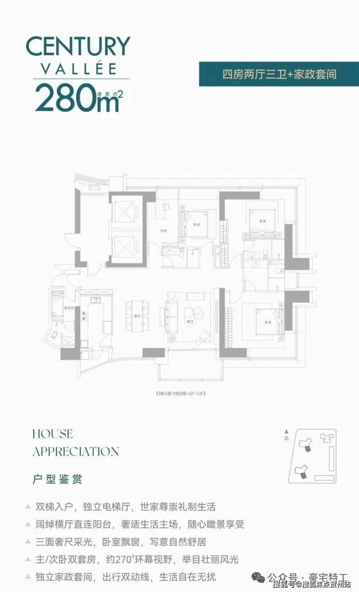 前两次都是公寓,现在住宅首发!还是定位相当高端的纯大平层而且还是无敌景观视野,8梯3户,233㎡/280㎡配备两个独立电梯,386㎡双梯设计,实在任性!