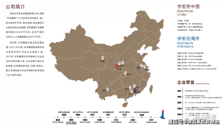 宇宏集团于1996年在深圳成立,是一家以房地产开发、商业运营、物业服务、健康养老、金融保险为主营业务的企业集团。开发建筑面积超过400万平方米,资产总值超过100亿元,土地储备超过100万平方米。