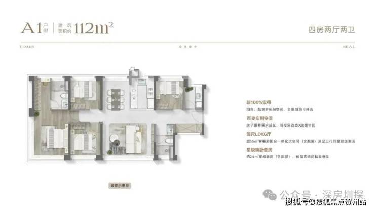 户型面积:建筑面积约99/114㎡ (新规产品,相当于传统建筑面积约120-150㎡户型)