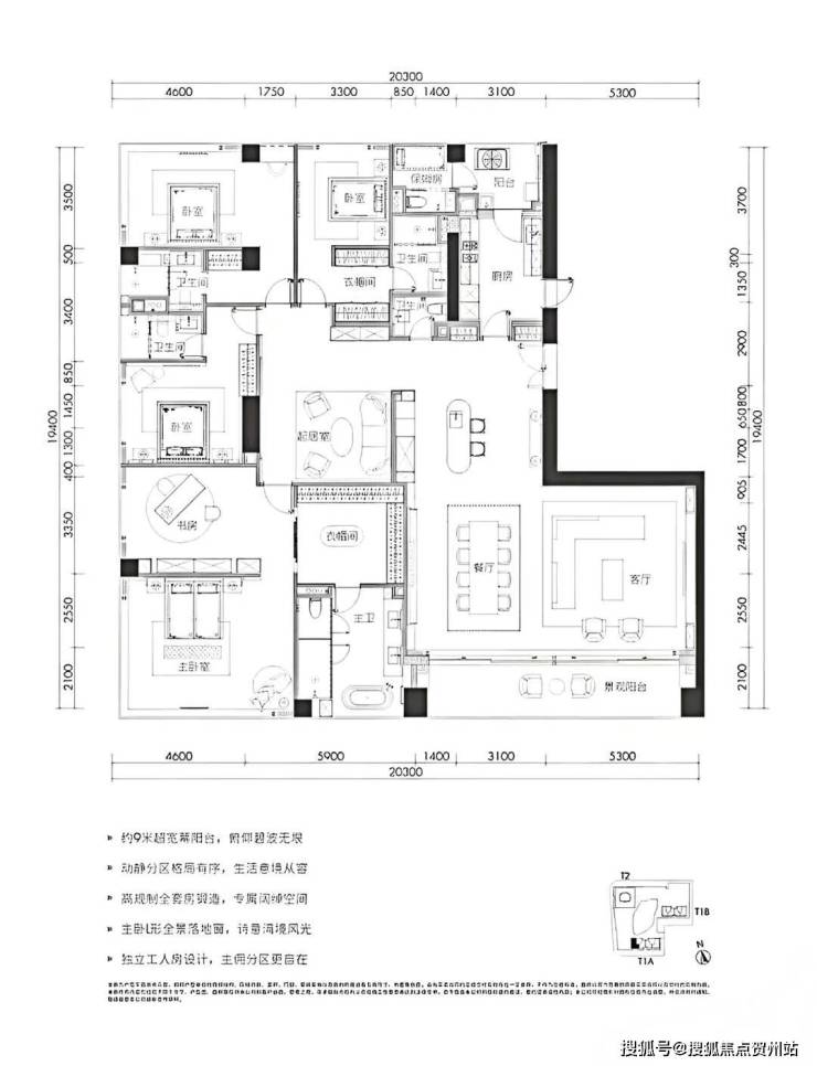 ★468㎡五房三厅六卫:位于1栋一、二单元高区33-38层,一层一户,仅6席。五房四套房设计,主卧L形全景落地窗,270°最佳观海位,南向超大三厅一体,动静分区布局有序。