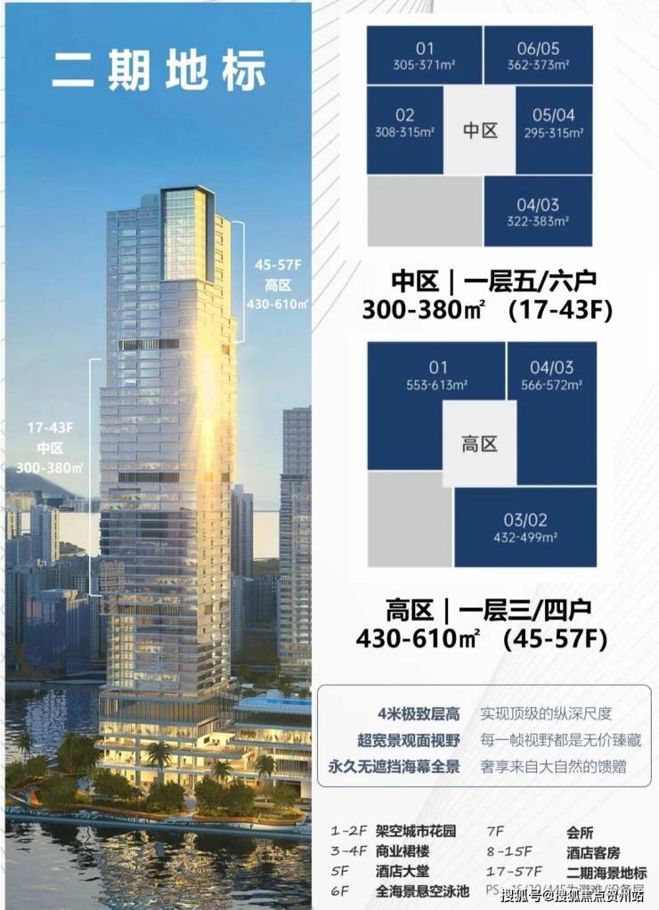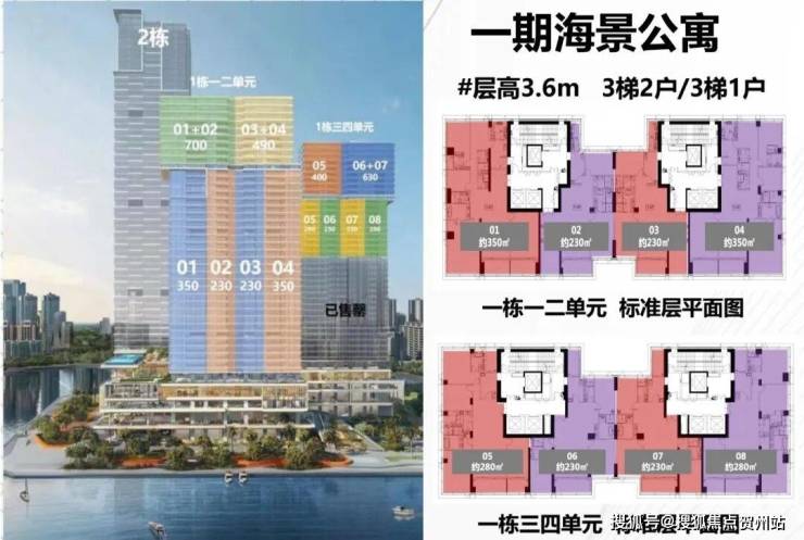 ★500-700㎡超大户型:700㎡户型位于1栋一、二单元高区33-38层,由01+02户型组成。户型宽敞奢华,可尽享海景与城市景观,为高端客户提供极致居住体验。