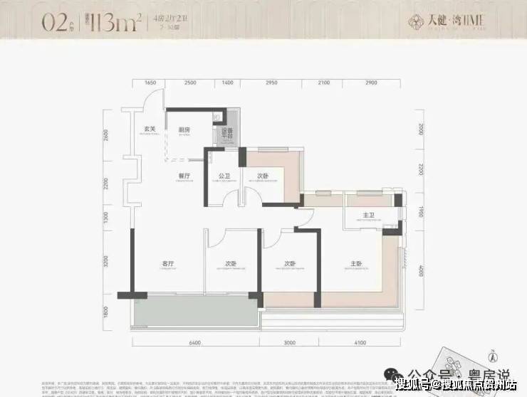 115㎡4房2卫,横厅户型,朝南看海,入户独立玄关,但三个次卧朝北;