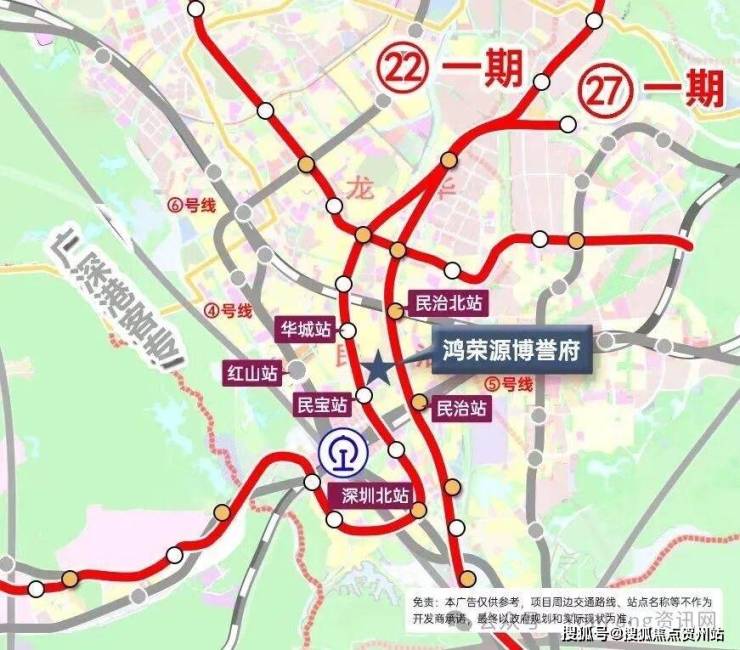 l 深圳北站高铁枢纽、地铁4/5/6号线已开通,22号线在建中,27号线规划中,已进入招标阶段,深大城际和深惠城际在建中,项目距离深大城际民治北站约900米,未来约20分钟到达机场,五地铁+二城际交汇环绕,五横六纵多维立体路网,无界城心繁华