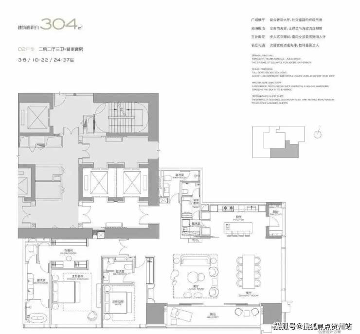 南北通透三面采光,顶奢总统套房规格,270°全景套房,享受湿地/公园/CBD景观,都是套房设计,更具私密性,中西厨分离。