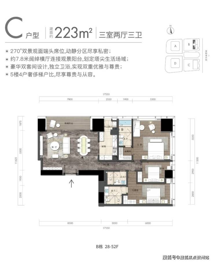 3房户型为223平双套间;