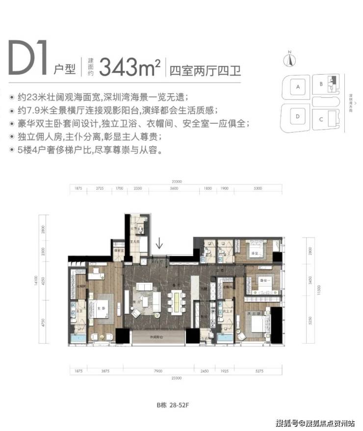 4房户型为340、343平;