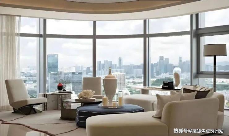 舒适:3.9米层高,10米客厅开间全落地玻璃设计。