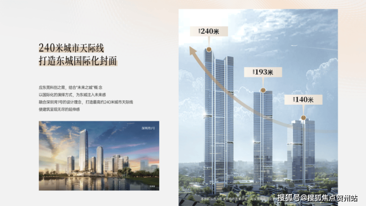 采用国际化的超高层建筑演绎手法,打造最高约240米高的环幕奢景大平层产品,并通过最先进的建筑手法与材质,接轨国际的审美标准,打造国际化建筑立面。