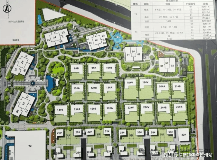 业态组成:4栋51-63层公寓(层高3.6-3.9米,含388米地标主塔T1)、2栋高层办公楼、19套独栋董事公馆、16套合院别墅及约1.4万㎡高端定制商业
