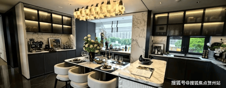 - 动区(餐客厅):5.8米开间的客厅,搭配开放式厨房+中西双厨岛台,空间感拉满。厨房配备上轨道推拉门,开合之间切换“开放社交”与“封闭爆炒”模式;西门子三件套(蒸烤一体机、洗碗机、燃气灶)、能率热水器、净水器、垃圾处理器都是交付标准,不用额外花钱添置。岛台设计更是贴心,炒好的菜随手放在台面上,避免来回奔波;餐厅旁的80cm飘窗也被充分利用,下方做抽屉储物,上方摆上咖啡机、榨汁机,秒变家庭水吧台,旁边再嵌入冰箱和酒柜,生活气息十足。