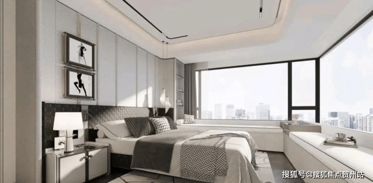 - 静区(卧室):主卧的270°转角飘窗是“杀手锏”——作为新规下的产品,转角无立柱遮挡,视野完全无界。西南向望出去是公园绿意,高层能直眺海景;东北向则是小区园林与城市景观,正对面就是腾讯全球总部企鹅岛(建设中),未来推窗就能看到互联网巨头的产业活力。飘窗上摆张茶桌,或是铺个软垫当“懒人角落”,都是属于主人的私享空间。主卧卫生间做了双台盆+干湿分离+独立浴缸,早上不用抢洗漱台,晚上泡个澡就能卸下一天疲惫,舒适度拉满。