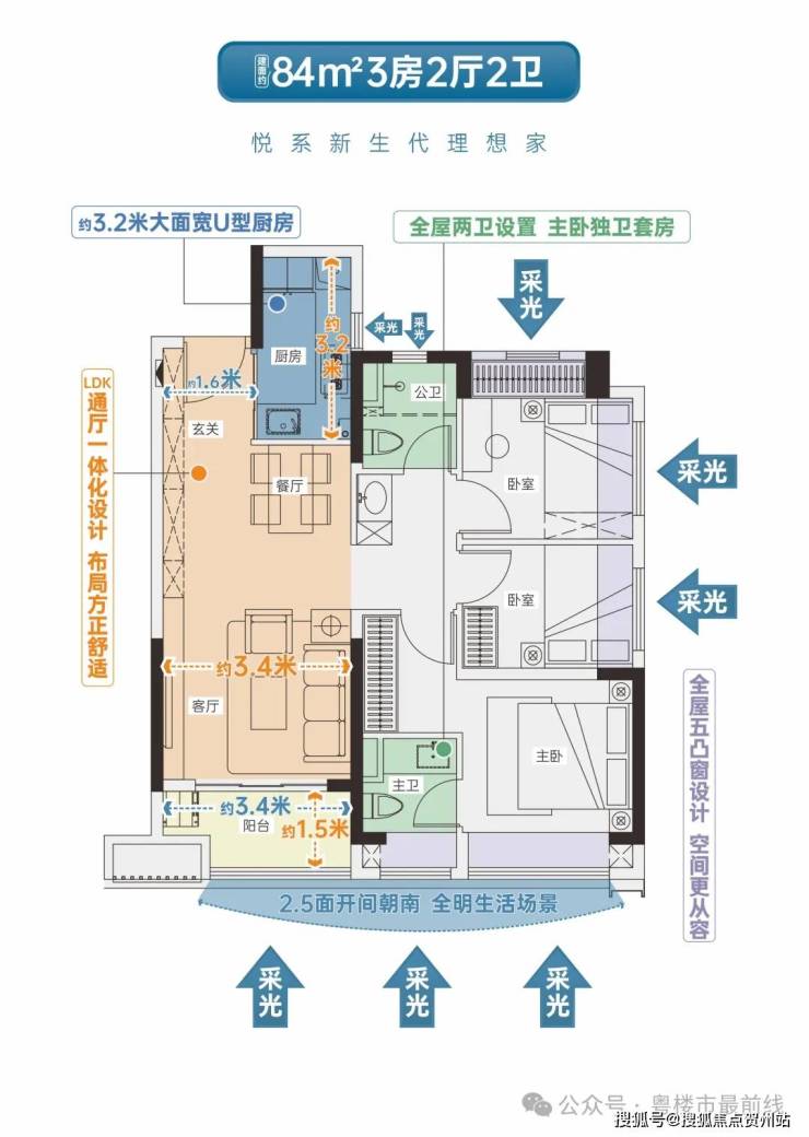 住宅户型:建面约84-128㎡三至四房,住宅使用率约78%(未包含不计容的飘窗、一半阳台)