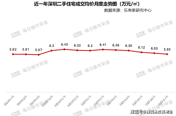 7月深圳二手住宅成交均价5.93万/㎡,连续5个月呈下行趋势。