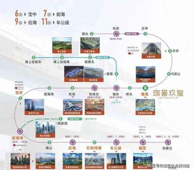 步行可达的是地铁11号线塘尾站,衡量地铁配套的价值,不能只看通勤距离,还得考虑线路串联的城市资源,11号线沿途站点都是城市地标级的综合配套,可实现6站到宝中,7站到前海,9站到深圳湾后海,11站到车公庙的快速轨道通行,可以说是“全城精华,一轨直达”。