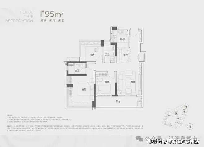 该户型为西南向(部分户型看海)或东北向看山景,是传统的竖庭格局,南北通透。最大亮点是,阳台从客厅对出连通到次卧,显得比较宽敞。特别是对于三代同堂的家庭,适合老人早期锻炼。