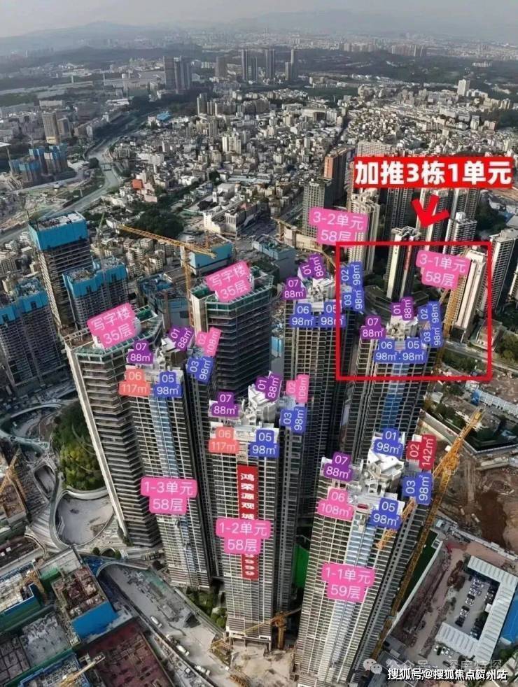 龙华观澜,鸿荣源观城(首推地块备案名:未来平方云山府),本次将会首推1栋2单元,共312套房源,面积有88-98㎡的3房2卫,108-117㎡的4房2卫户型,周边有2024年9月入市的金光华溪山禾玺,备案均价4.43万/㎡以及2024年5月份入市的景勋天著,备案均价4.97万/㎡,实际折后销售均价4.2万/平,这次观城开盘均价大概率也是在这个幅度范围内,预计在2026年12月份带精装交付。