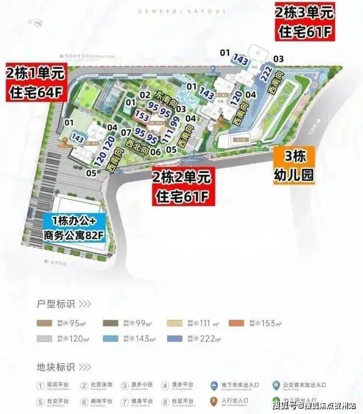 2栋1单元为住宅+保障性住房,64层;2栋2/3单元为住宅,61层。