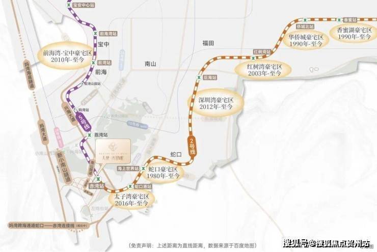 - 地铁:项目距2号线(豪宅线)与5号线(发展线)首发赤湾站约300m(直线距离),从此,坐地铁而不是站地铁,未来新小南山隧道(预计2027年竣工)、望海路升级等重大交通配套持续落地,咫尺间连通蛇口、前海;