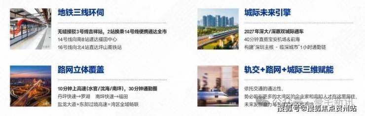 方洲无缝接驳地铁3号线吉祥站,两站换乘14号与16号线大运站,一部短剧的时间直达岗厦北。10分钟上水官高速、沈海高速,15分钟上外环高速,30分钟即达市内。