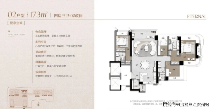 最大面积产品 173 ㎡产品作为压轴藏品, 户型整体正对深圳中轴, 总览中轴灯光秀+各类深圳主活动