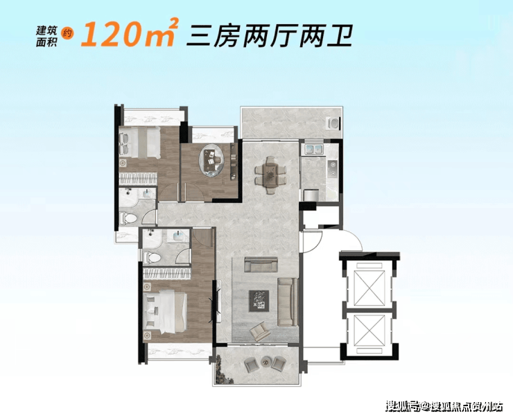 项目推出建面约85-120㎡精装二至三房,品质感拉满。