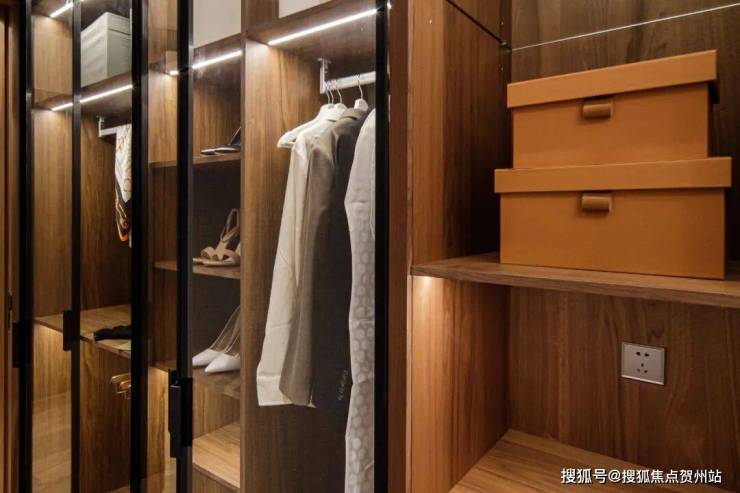 主卧套房带步入式独立衣帽间,时尚又温馨,容得下男女主人的精致优雅。
