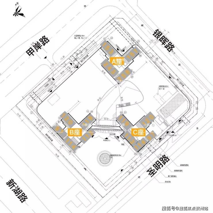总建面约 10.56万㎡,商业建面约 1.15万㎡,住宅共有 三栋塔楼,建面约 4.86万㎡,三栋住宅 一层二层为商业,三层以上为住宅。