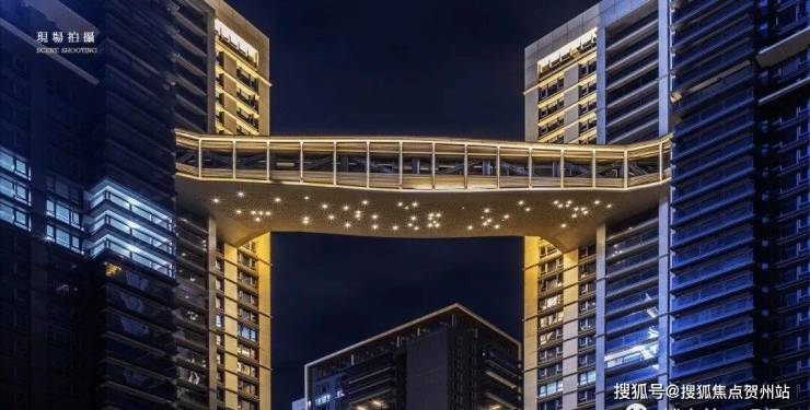 云玺锦庭是一座精心设计得恰到好处的建筑,空中廊桥、顶部的空中庭院,将原本独立的两栋建筑在高空连接起来,形成无障碍观景平台,是居民观看日落、欣赏城市夜景的绝佳去处。空中云厅采用满足适应活动的低照度,用一系列漫射、低矮的点光源进行装饰。连廊下层采用不锈钢进行装饰,利用精细工艺打磨出不同程度的哑光,从而映射出 “月下星光” 的光影意境。
