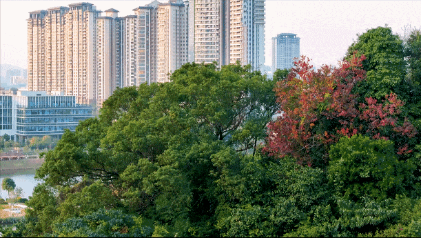 金桂、榉树、大王椰子、蒲桃、水石榕等名贵树种,丰富叶形与季相变化,展露出普通小区难以拥有的斑斓生命力。