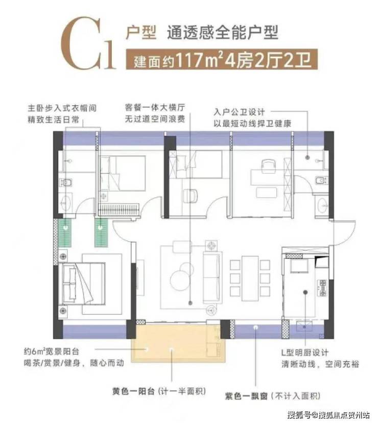 云山海户型设计的非常不错,按照常规备案的公式不计赠送,使用面积能到约75%以上,如果计算上飘窗,阳台等赠送的面积,实际使用率会在85%以上。