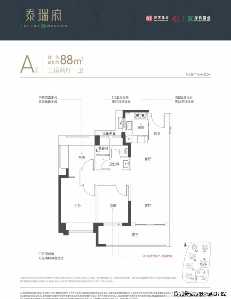 全南朝向:主要生活空间南向设计,3开间朝南;