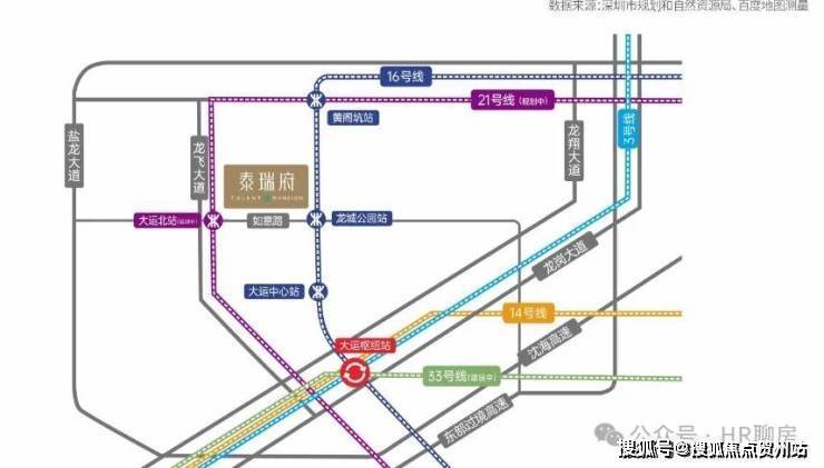 地铁:紧邻地铁16号线龙城公园站(约600米),2站大运枢纽。距21号线大运北站(建设中,约50米),10站南山;33号线(建设中)/深大城际(建设中)4站深圳北枢纽、5站西丽、8站前海;