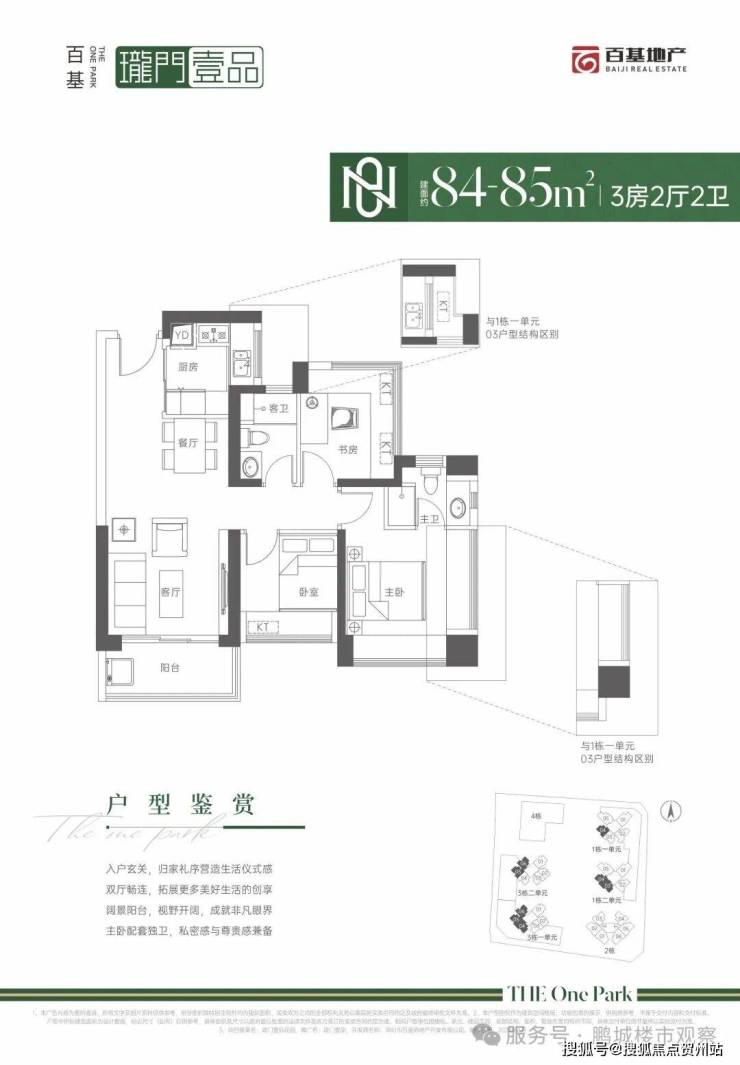84㎡的3房2厅2卫,设计的是经典竖厅格局,进门入户玄关,客厅3.5米开间,LDKB一体化设计,动静分区,主卧+1个次卧270°飘窗,U型厨房,卫生间干湿分离,得房率:71.29%(不含赠送),西南或西北朝向。
