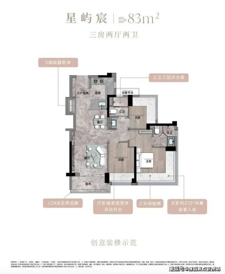 建面约83-133㎡3-4房宸式美学新著,LDKB巨幕方厅,跑道式景观阳台,小家化星级酒店主卧套房,270°环幕全景舱,客厅次卧无剪力墙灵动设计,实现超高实用率,每一户皆是颐安“超新一代作品”的匠心宣言。