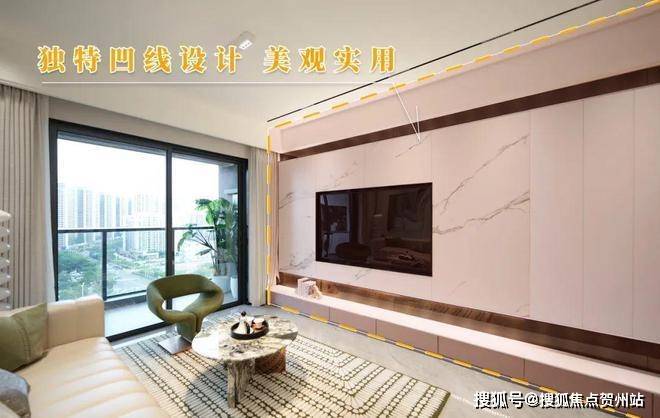 独特的凹线设计使得背景墙美观平整,也可以充分利用立体空间,加载储物设计,实现收纳与装饰的双重价值。