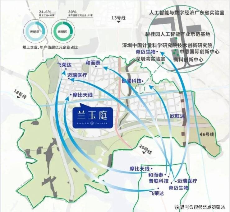 片区内吸引了迈瑞医疗、深圳湾实验室、普联科技、和而泰等龙头企业集聚。汇聚约122家超亿元产值企业,磁吸近十万高精尖科技人才持续涌入,高阶圈层聚首,共鸣峯层生活。