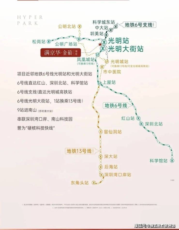 周边分布有地铁6号线的光明、科学公园站,距离约1公里左右,两站可换乘13号线,规划有另一条直达南山科技园的29号线,轨道交通便利。