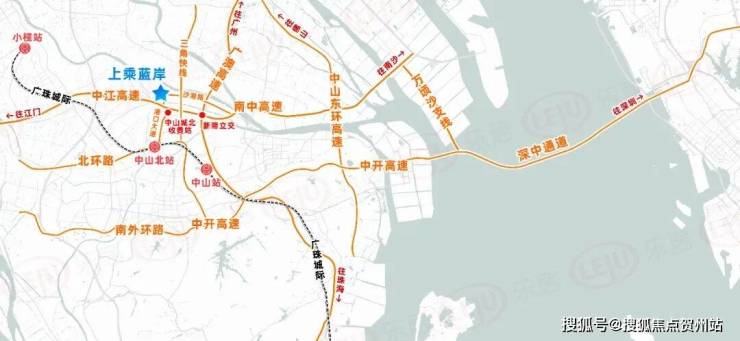 同时,经南中高速万顷沙支线可无缝衔接深中通道,届时,从项目出发,通过中山城北站,上中江高速,接南中高速,再经由万顷沙支线直接进入深中通道,约1小时抵达深圳。