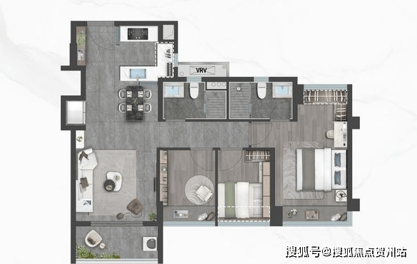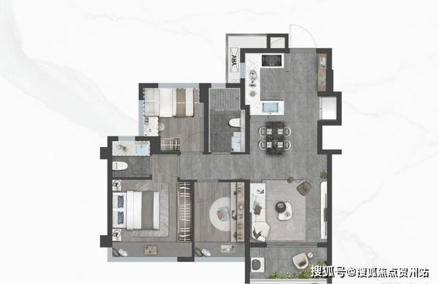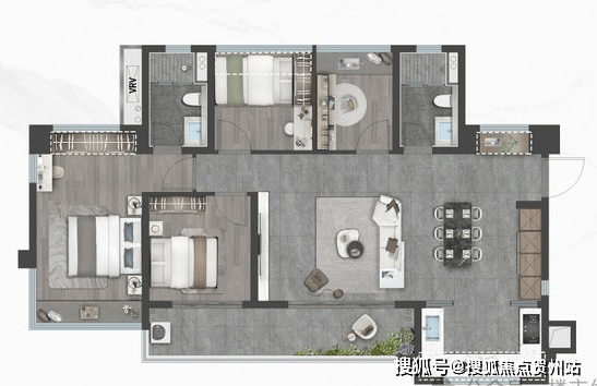 御雲:建面约80㎡三室两厅1.9卫,创新型1.9卫设计,臻享从容生活