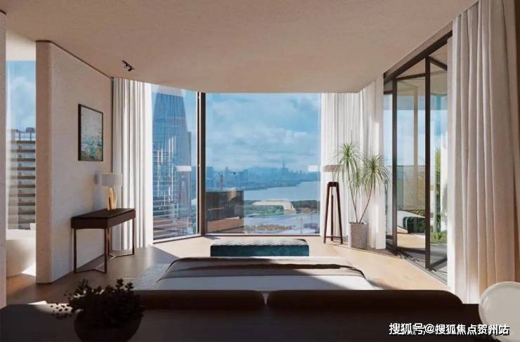超高层观景面采用落地玻璃,深圳湾视野开阔,无需阳台即可观赏海景。