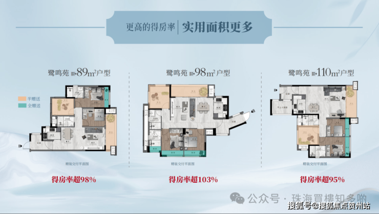 鹭鸣苑全系产品皆享有超95%得房率,最高得房率超103%!全增送大尺度飘窗、更多实用面积、更大尺度面宽客厅,实现户户无自遮挡无对视,享受更高私密性,畅览一线海景。
