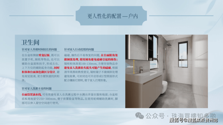 从公区到户内,从电梯间到过道、客厅、卧室、卫生间、厨房等空间升级超30项人性化配置,方便全龄段家人日常起居。