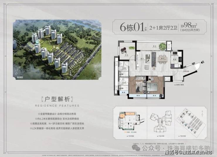 建筑层高20-21层,主打建面约75-119㎡二至四房墅质洋房,同步推出约180-412㎡中式别墅,敬献层峰人士。