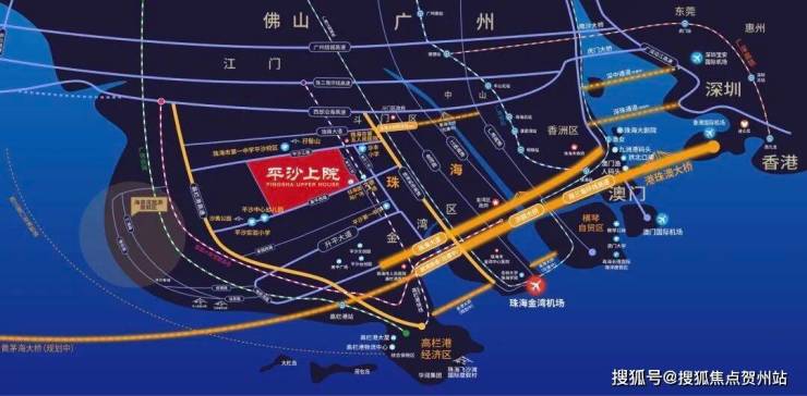 项目以南经珠海大道与港珠澳大桥西沿线相连,可快速通达港澳。项目周边西部沿海高速、高栏港高速等与黄茅海大桥对接,可通达珠三角各地,与广东省其他城市形成1小时经济圈。