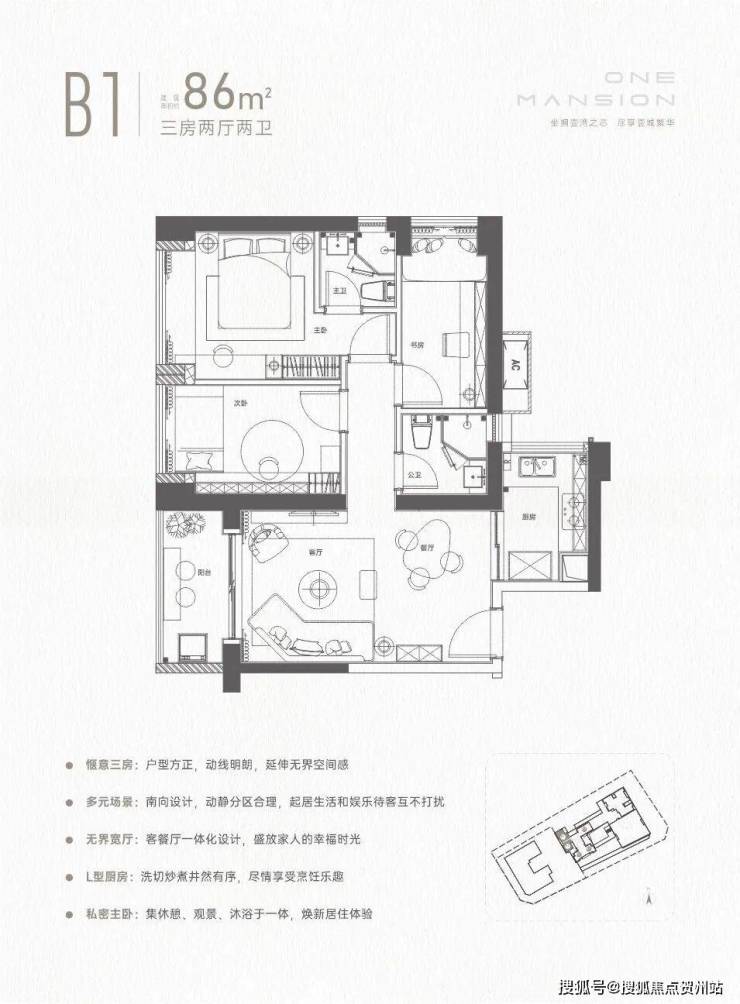 (1)86㎡的3房2厅2卫,折后总价420-450万/套。
