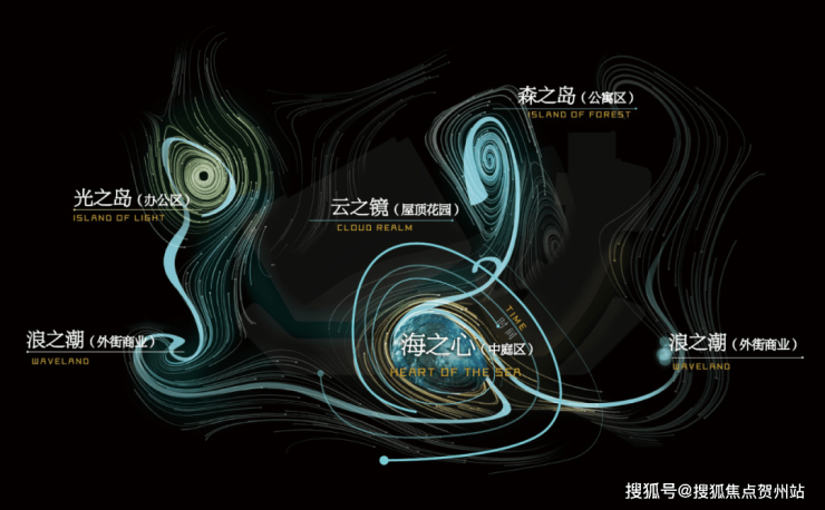高线公园式的立体、半开放的活力岛屿景观设计;