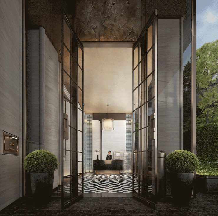 项目从入户,就开始拉高建筑价值和提供情绪价值,以奢华酒店为设计理念,对地面归家和地下车库归家进行精心打造,以精确手法铺就奢阔的归家体验。