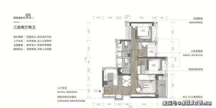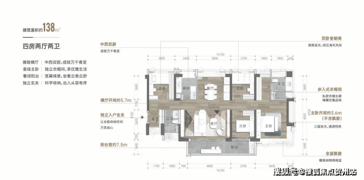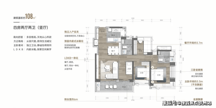 【产品面积】建面约95㎡/108㎡/109㎡/138㎡3-4房
