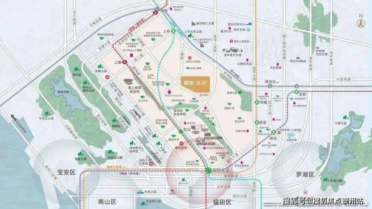 联发·臻著雅居占位的红山-上塘,是龙华核心资源最为集中板块之一,被誉为龙华的CLD,作为城市中轴中心片区,红山-上塘与福田、罗湖中心及西丽大学城、留仙洞总部基地等核心地带相邻。这在人流、资金流等方面得以持续承接外溢需求,片区资源虹吸效应突出,是满足高品质商住的承载区。同时,片区南面与深圳北站商务区接壤,相当于龙华的中央商务区;东北面为龙华传统中心,规划发展为龙华超级商圈。